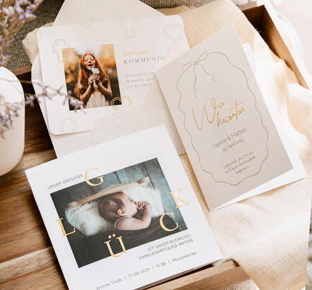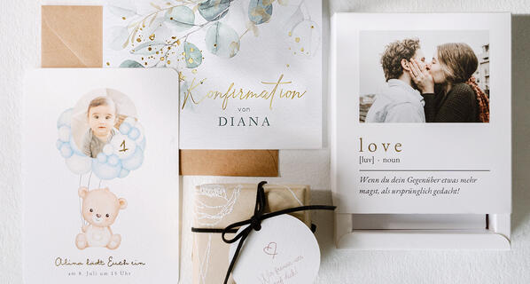 Ein schöner Anlass steht an, zu dem Du persönlich einladen oder etwas Selbstgestaltetes schenken möchtest? Wir haben die passenden Ideen für Deine Wünsche rund um originelle personalisierbare Papeterie, Deko und Fotogeschenke. Lass Dich jetzt inspirieren.