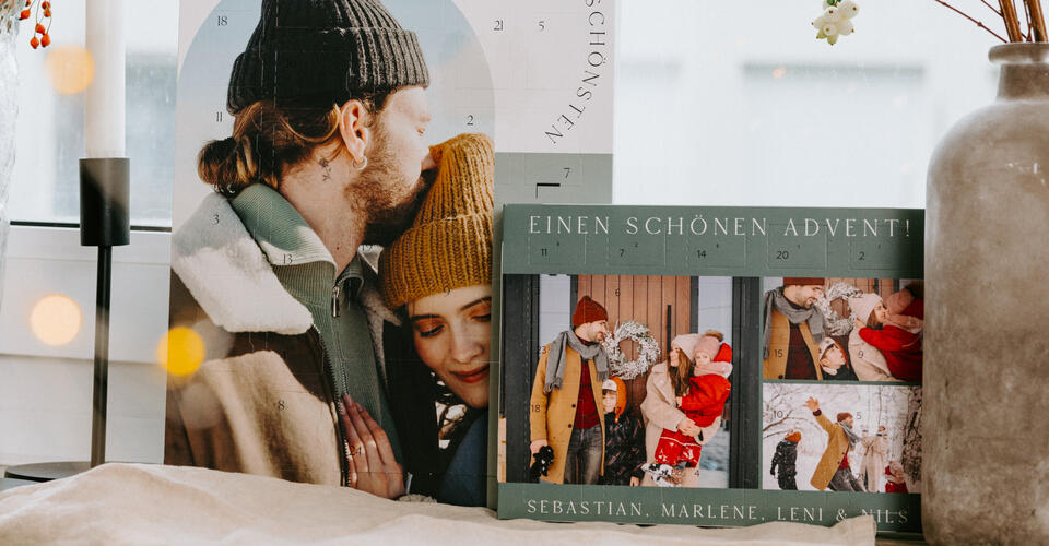 Bringe Deine Familie und Freunde jeden Tag aufs Neue zum Strahlen – mit unseren einzigartigen Foto-Adventskalendern. Hinter dem weihnachtlichen Cover versteckt sich ein hochwertiges Premiumposter, das Du {{block3}} kannst. An 24 Tagen enthüllen Deine Lieben so einen ganz besonderen Fotomoment.{{block2}}