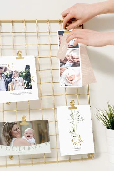 Eine originelle Dankeskarte mit einem Foto vom süßen Täufling ist eine wertschätzende Geste an alle Taufgäste und gleichzeitig eine bleibende Erinnerung an diesen bedeutenden Tag.