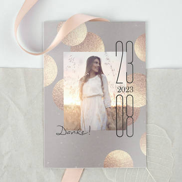 Mit einer personalisierten Karte sagst Du Deinen Hochzeitsgästen und -gratulant:innen von Herzen Danke und versendest damit zugleich ein wundervolles Andenken an Euren Traumtag.