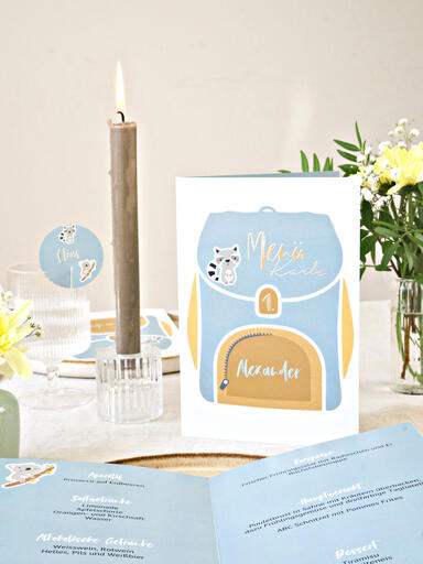 Wenn aus Kita-Kindern stolze ABC-Schützen werden, sollte auch die Tischdeko ein Highlight sein. Egal ob Du eine kleine Feier zu Hause oder eine große Einschulungsparty im Restaurant planst – Menükarten gehören zu einer liebevoll gestalteten Festtafel einfach dazu. Wie Du mit unseren fröhlichen Designs, dem intuitiven Konfigurator und den kostenlosen Beispieltexten im Handumdrehen selbst wunderschöne Speise- und Getränkekarten erstellst, zeigen wir Dir hier:
