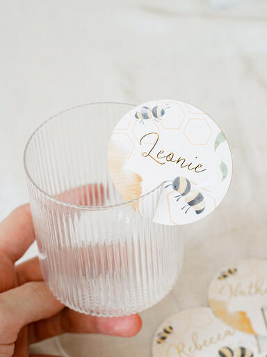 „Ich bin mit der kleinen, frechen, schlauen Biene Maja aufgewachsen. Außerdem hat mein Opa damals selbst Bienen gezüchtet und uns immer leckeren selbstgemachten Honig geschenkt, wenn wir zu Besuch kamen. Ich weiß noch, wie fasziniert ich jedes Mal von dem kleinen Bienenvolk war, das da den ganzen Tag so emsig durch die Lüfte flog und mir die {{block3}} näher gebracht hat. Umso schöner ist es, dass ihre Bedeutung heute mehr in den Fokus rückt und {{block4}} sind. Da darf natürlich auch eine Kollektion für Babypartys nicht fehlen. Ich wünsche der werdenden Mama, für die Du die Baby Shower organisierst, ganz viel Freude mit meinem „BeeBee“-Design.“ {{block2}}