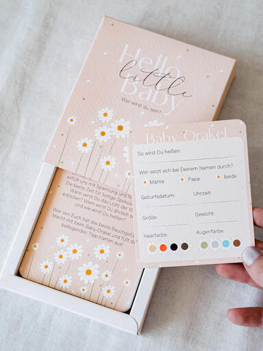 Mit Gänseblümchen kannst Du kleine kulinarische Köstlichkeiten sowie stimmungsvolle Deko kreieren. Wenn es die Jahreszeit erlaubt, pflücke vor der Feier ein Körbchen voller Blüten mit Stil. Daraus könnt Ihr später {{block1}} mit der werdenden Mama.{{block4}}Für besonderen Spaß auf der Babyparty sorgst Du mit {{block5}}. Lass Deine großen und kleinen Gäste zum Beispiel das Baby-Orakel ausfüllen und auf den Kärtchen ihre Tipps für den Namen, das Geschlecht und die Augenfarbe des neuen Erdenbürgers notieren. Mit so viel Liebe zum Detail wird Deine Gender Reveal Party ein unvergessliches Ereignis.