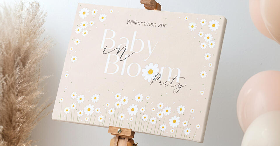 Mit einem Willkommensschild kannst Du alle Gäste auf der Babyparty stilvoll begrüßen und die werdende Mama auf besondere Weise überraschen. Suche Dir einfach ein Design aus und personalisiere es nach Deinen Wünschen.