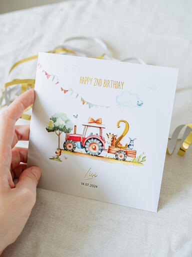 Die Papeterie unserer Kollektion "Auf dem Bauernhof" bietet alles, um einen unvergesslichen Tag für Dein Kind zu zaubern. Denn jedes Produkt kann individuell auf den Geburtstag Deines kleinen Sonnenscheins angepasst werden. {{block4}} Die Einladungskarten kannst Du vorab als {{block1}} bestellen, um Dir einen echten Eindruck von der Qualität zu machen. Passt glattes Feinpapier oder Bütte besser? Harmoniert die Veredelung in Gold oder Silber mit dem Design am besten? Ist die Schriftgröße gut lesbar? Die Entscheidung kannst Du ganz in Ruhe zu Hause treffen und dann Deinen Favoriten wählen. {{block3}}
