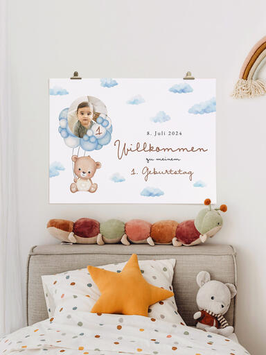 Wähle jetzt Dein Lieblingsmotiv aus und gestalte das Schild mit einem persönlichen Willkommensgruß sowie niedlichem Foto vom Geburtstagskind.