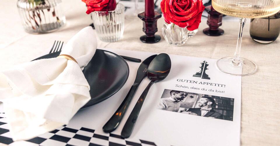 Im passenden Design Eurer Tisch- und Menükarten
