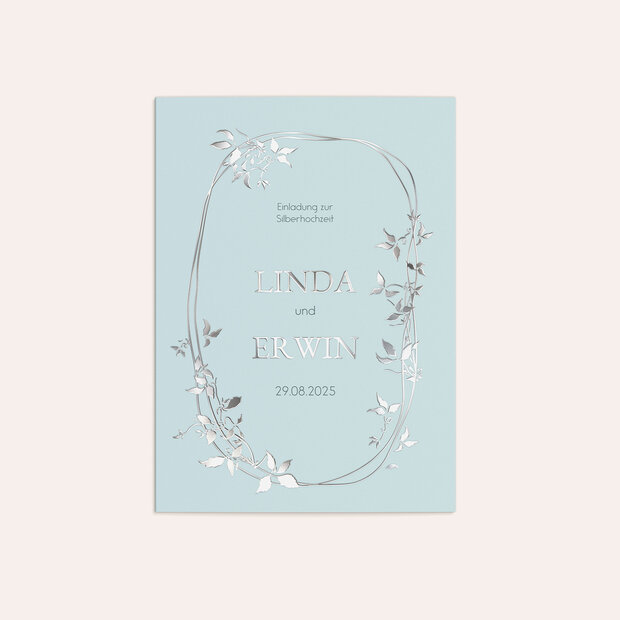 Für die Erstellung Eurer Einladungen zur Silberhochzeit findet Ihr bei uns zahlreiche Gestaltungsmittel. Wie wäre es zum Beispiel mit einer ausgefallenen Kartenform, besonderen Papierart, edlen Schriftart oder hochwertigen Veredelung bestimmter Elemente auf der Karte? Habt Ihr Interesse an einer {{block2}}, die Ihr schnell und bequem per E-Mail oder WhatsApp an Eure Lieben versenden könnt? Probiert die verschiedenen Möglichkeiten einfach aus. Ein Vorschaubild zeigt Euch direkt, wie Eure Karten nach der Personalisierung aussehen würden.
