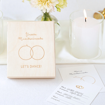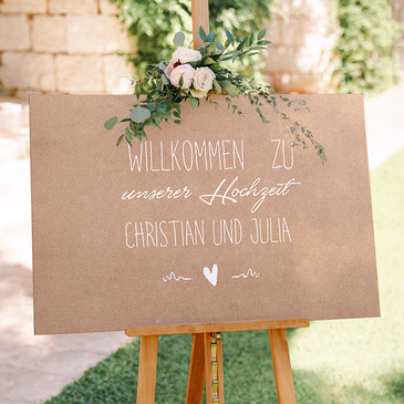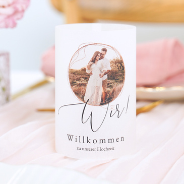 Herzliche Willkommensgrüße beim Empfang, eine persönliche Ansprache der Mitfeiernden an der Festtafel sowie zart schimmernde Lichter in der gesamten Location: Es sind die vielen liebevollen Details, die ein einzigartiges Flair auf Eurer Hochzeit kreieren und es unvergesslich machen. Lasst Euch von unseren originellen Produktideen inspirieren und gestaltet sie individuell mit eigenen Fotos und Texten.