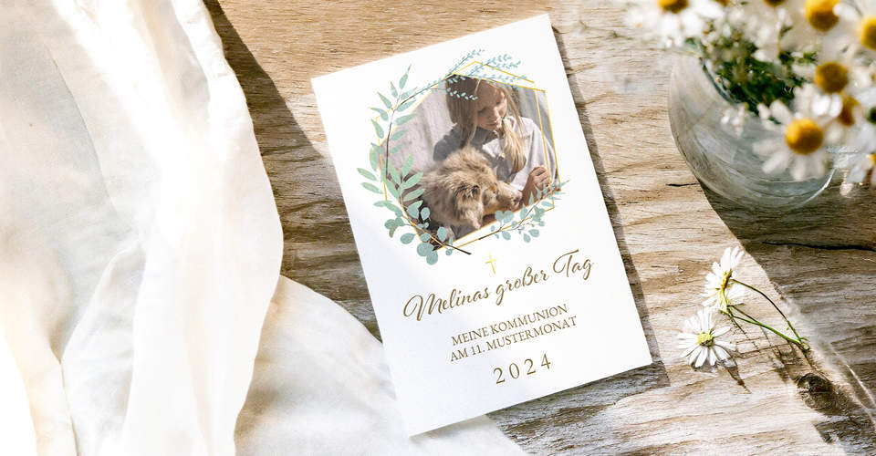 Ein großer Tag steht an: die erste heilige Kommunion Deines Kindes. Lade jetzt Familie und Freunde mit wunderschön gestalteten Einladungskarten zu diesem besonderen Ereignis ein.