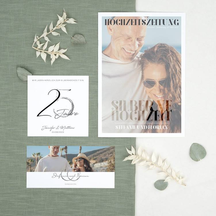 Mit persönlichen Bildern und Worten erinnert eine Festzeitung Euch und Eure Gäste an die schönsten Ereignisse der letzten 25 gemeinsamen Jahre. Sie ist nicht nur auf der Feier ein ganz besonderer Hingucker mit großem Unterhaltungswert, sondern wird Euch auch noch nach der Silberhochzeit sehr lange Freude bereiten.