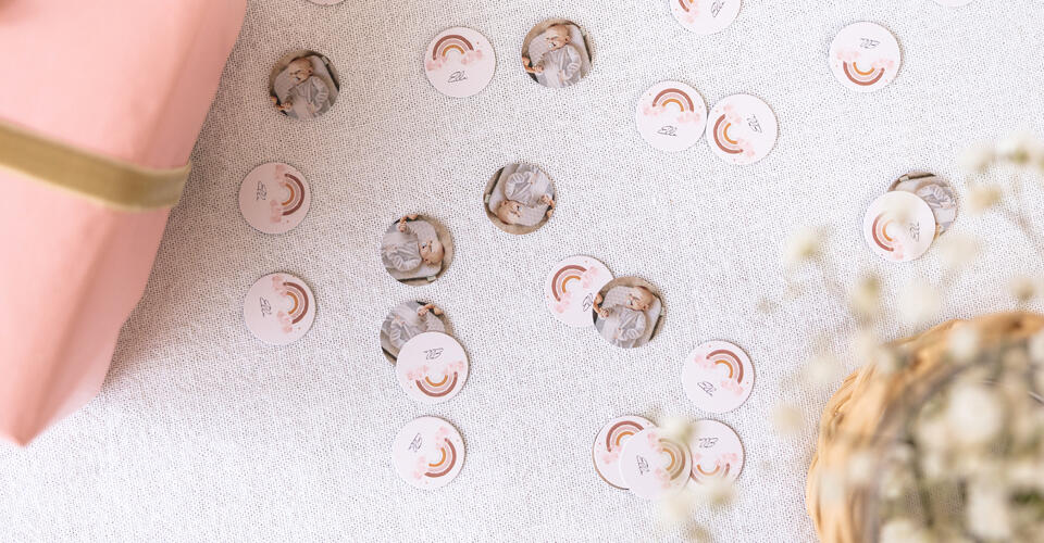 Lass Dich von unseren bezaubernden Motiven für Mädchen und Jungs inspirieren und kreiere online personalisiertes Konfetti für die Taufe. Bedruckt mit Deinem Wunschtext und wahlweise einem Foto Deines kleinen Lieblings wird die Streudeko im Handumdrehen zum einzigartigen Blickfang.